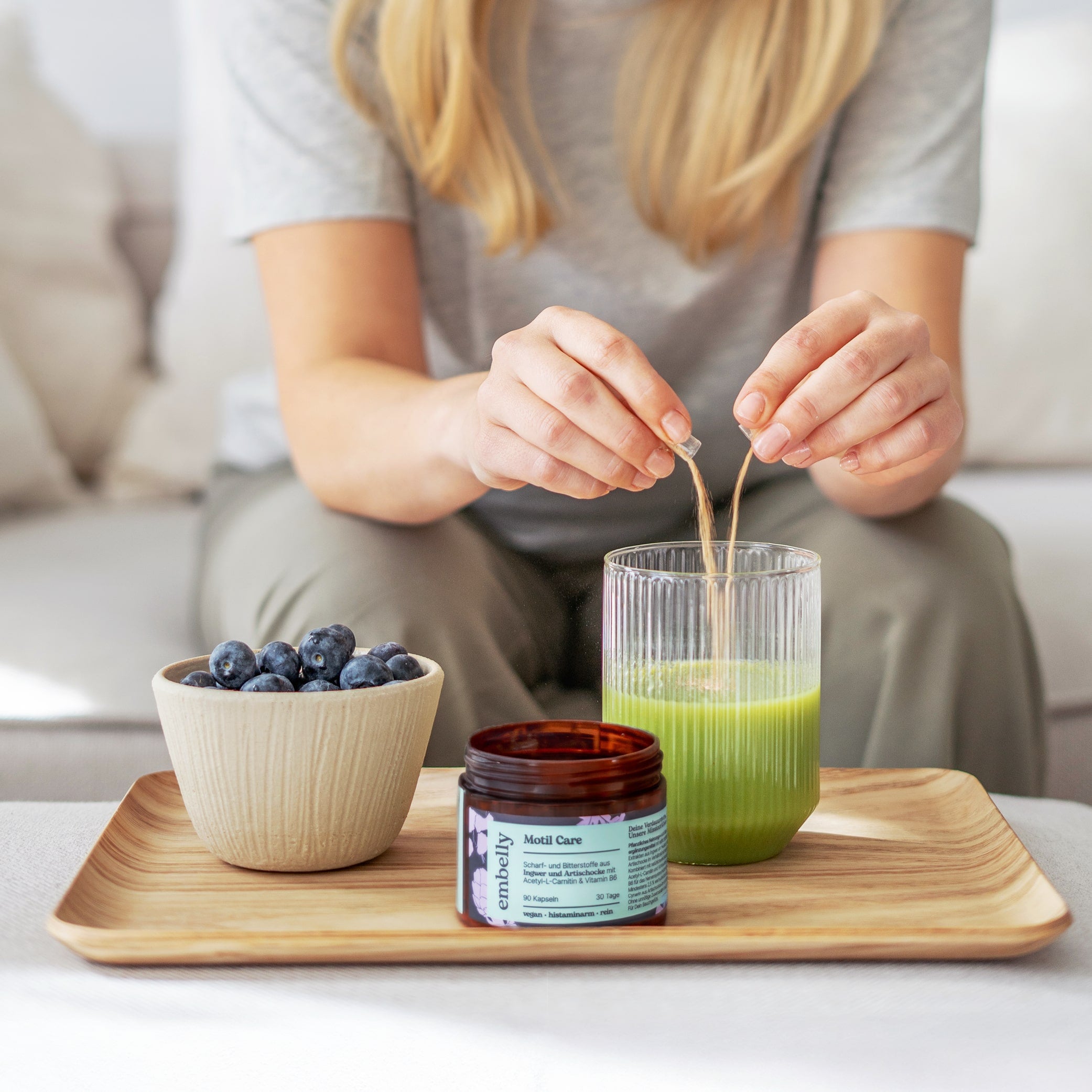 Ich habe kein Blähbauch, aber bin trotzdem mit meiner Verdauung nicht zufrieden. Ist Motil Care das Richtige für mich? Ja.