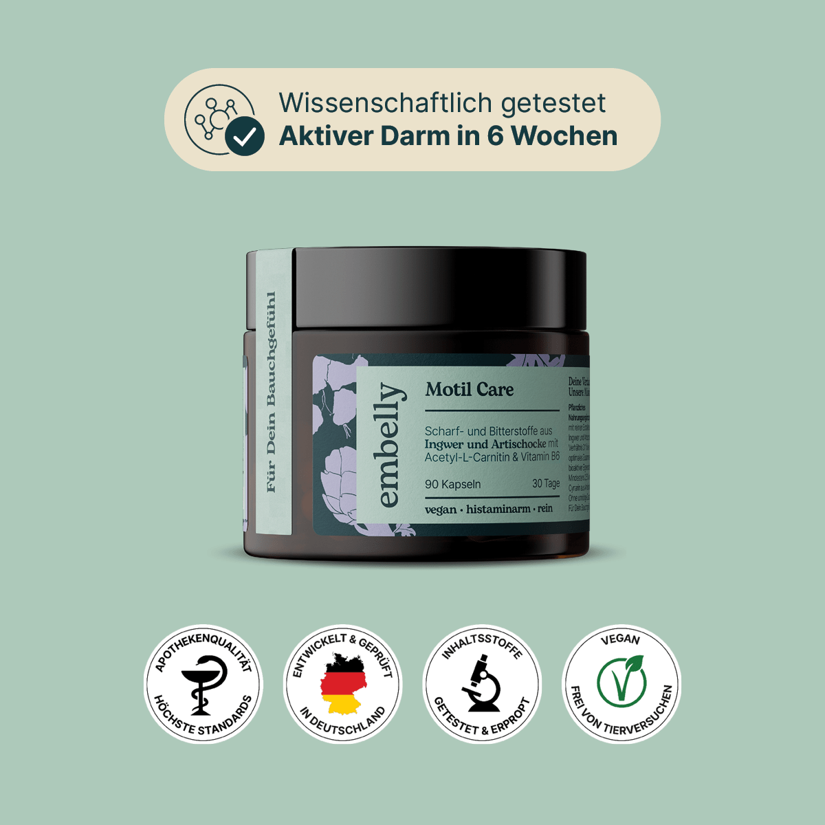 Über 20.000 Kunden bestätigen: Motil Care aktiviert Deinen Darm und beseitigt endlich die Ursache von Blähbauch, Völlegefühl und Verdauungsproblemen.